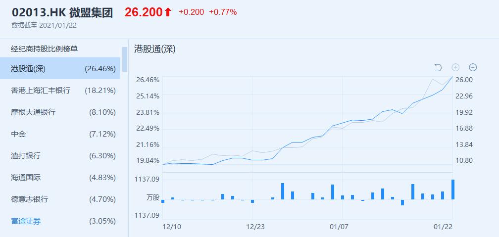 微盟今年大幅上涨,南下资金抢筹是主要因素之一 数据来自富途