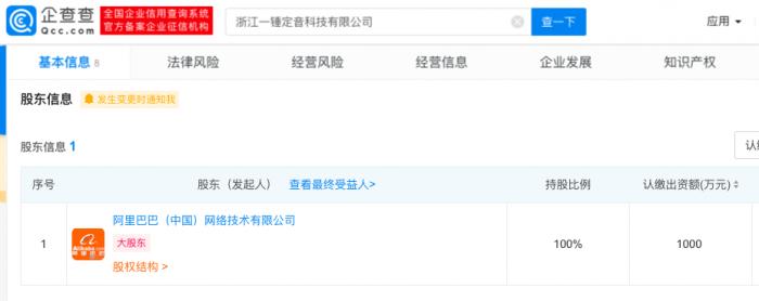 21世纪经济报道记者查阅工商资料发现,1月25日,浙江一锤定音科技有限公司成立,法定代表人为陈慧明,注册资本为1000万元人民币,阿里巴巴持股100%。
