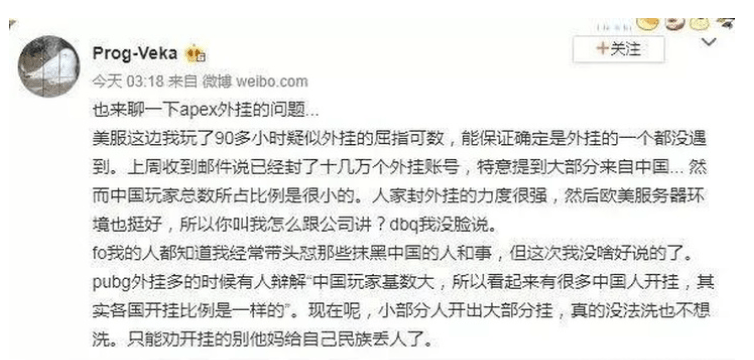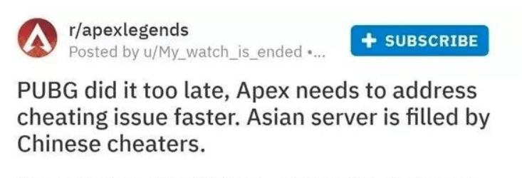 2019年战术竞技类游戏《Apex英雄》大火,一个月用户数量突破5000万,不少中国玩家翻墙开加速器去体验游戏,却受到了不少国外玩家的抵制。