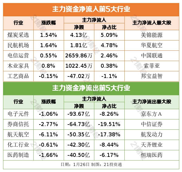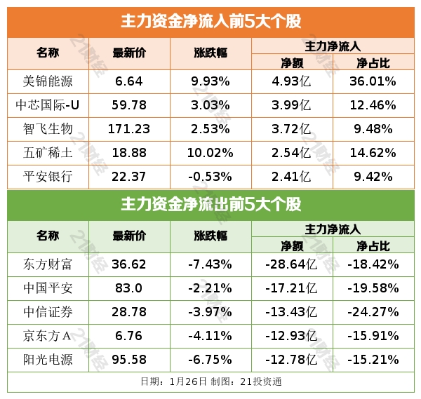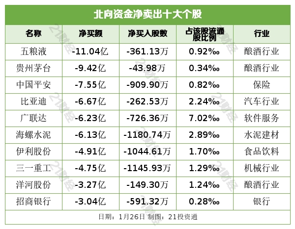 据21投资通(微信号ID:touzit21)智能监测,1月26日,北向资金净卖出35.41亿元,其中沪股通净卖出29.16亿元,深股通净卖出6.25亿元。