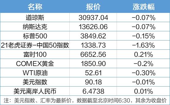 欧股全线收涨。美股高开低走小幅收跌;抗疫概念及充电桩板块走高。纽约黄金已连续四日走低并创去年4月30日以来最长连跌走势。