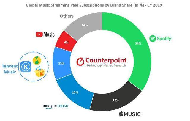 根据 Counterpoint Research 的最新调查结果显示,2019 财年全球在线音乐流媒体订阅量同比增长 32%,达到 3.58 亿订阅量。2020 年底,在线音乐流媒体订阅将同比增长 25% 以上,超过 4.5 亿订阅。