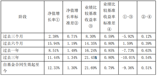 报告显示,过去三个月,基金份额净值收益率仅2.38%,大幅跑输同期业绩基准8.30%;基金规模也只剩下4.31亿元,较上一年同期缩水94.11%。