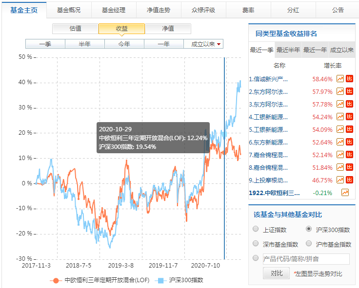 公开资料显示,中欧恒利,是一只3年定期开放的混合类主动管理型基金,成立于2017年11月1日。
