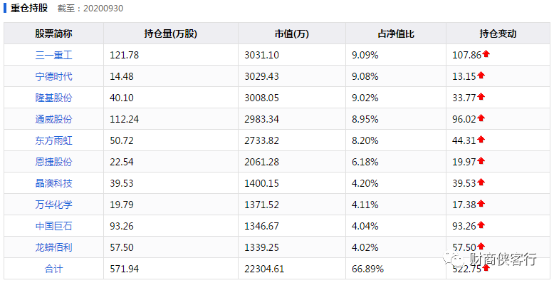 翻看创金合信工业周期股票A最近两个季度的持仓,基本上保持一致,大牛股宁德时代,隆基股份,通威股份等悉数在列,可见基金经理对自己看好的股票还是相当有信心的。