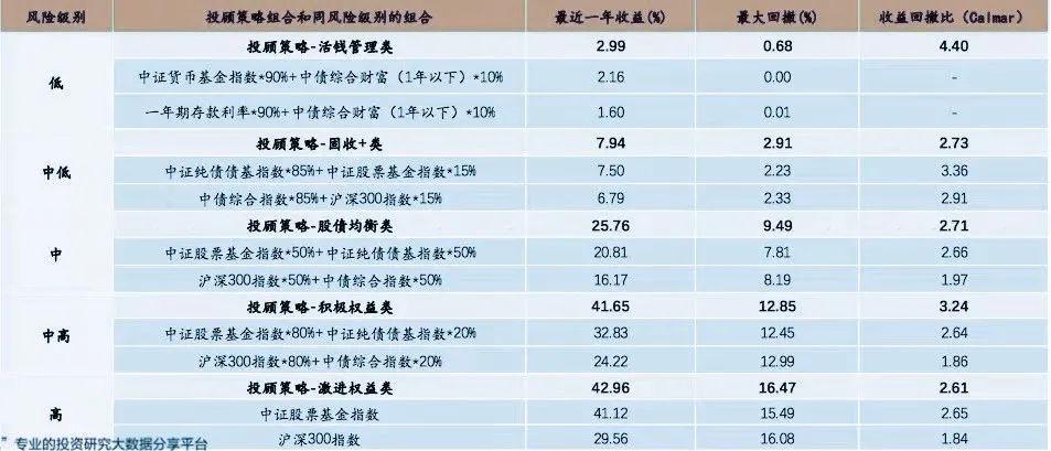 低风险类型也有不少出色的产品,以嘉实财富的固收优选组合为例,过去一年收益率5.54%,是普通投资者青睐的余额宝收益近两倍,由于目前大部分投资者的愿景为“承担适中风险的同时获得稳健收益”,这也给中低风险类投顾产品撬动货币基金7.4万亿元的市场留下了想象空间。
