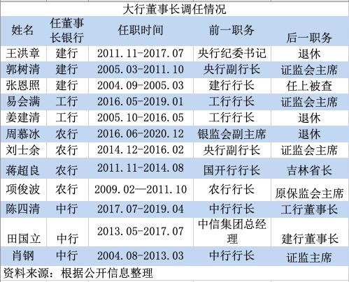 分析来看,跨行平级调动可能受到机构改革的影响。2018年新一轮机构改革后,原银监会、原保监会合并为银保监会,作为四大行董事长进一步升迁的“三会”主席名额少了一个,相应增加了不同大行之间的平调,但一般由资产规模小的机构调往规模大的机构。