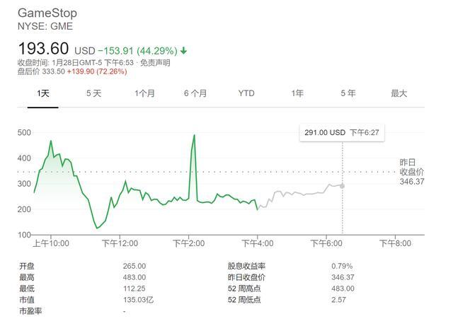该消息传出后,WSB概念股在经历周四暴跌后,集体盘后再度暴涨。截至发稿,游戏驿站涨72.26%,高斯电子涨60.78%,AMC涨46%,黑莓涨18.09%。