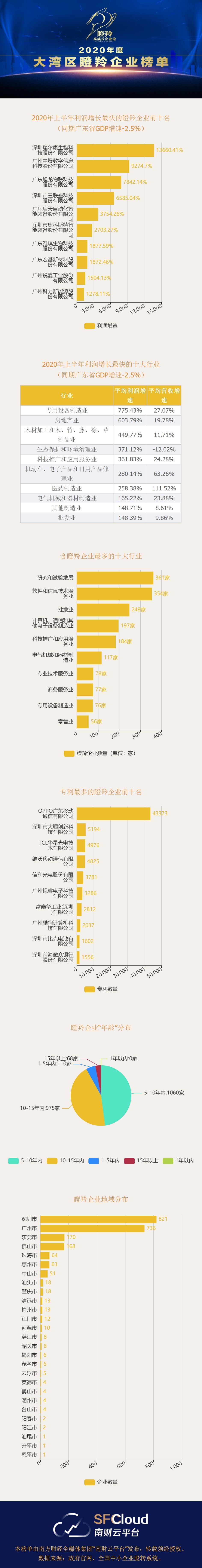 1月29日,南方财经全媒体集团依托自主建立的首个大湾区瞪羚企业数据库,发布“2020年度大湾区瞪羚企业榜单”(下称“榜单”)。这份榜单以地域分布、“年龄”分布、行业分布和利润增速等维度为切入口,全面梳理粤港澳大湾区“瞪羚”企业发展概况。