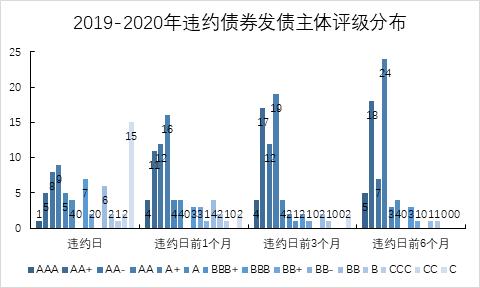 从违约债券主体评级看,债券违约发生的当日主体评级主要集中在C评级,债券违约日前1个月主体评级主要集中在AA及以上评级;从违约日再往前推3个月、6个月来看,发债主体的评级更多集中于AA及以上高等级,主体信用评级验证风险功能较弱,评级滞后性较强。