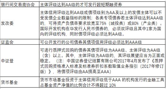 除了准入要求外,各相关监管部门或组织等在发行管理、担保条件、抵质押、投资者认购、投资限制、风险权重计量等方面,都涉及对发债评级的要求,此处不一一列举。