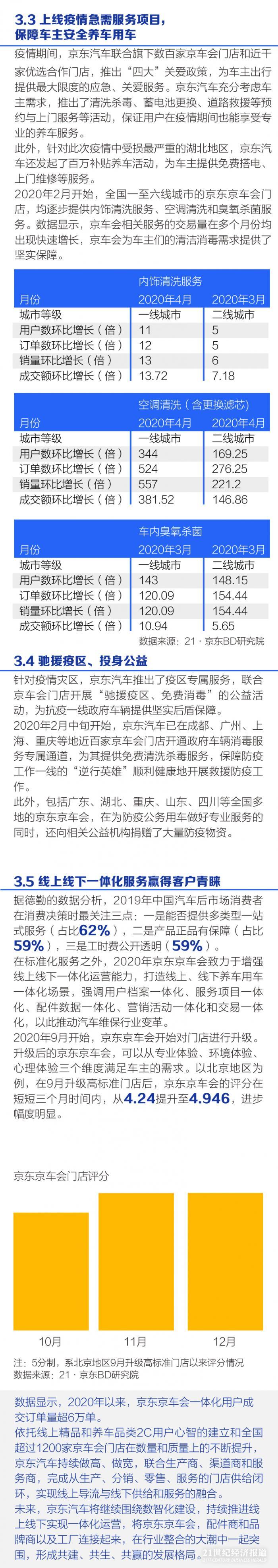 报告发现,京东汽车等平台,依托强大的供应链能力和品牌能力,已在2020年加速整合重构汽车B端产业链和C端服务供应链。通过向上游联合优质厂商反向定制产品,向下游加速布局优质汽配门店、配件零售和维修门店服务网络,京东汽车为消费者提供线上线下一体化的服务模式,已在今年成为中国汽车后市场中的标杆企业。京东汽车以优质商品和品质化的服务为消费者打造了一条体验更出色便捷的养车路径,并让一大批具备先进消费理念的用户成为精“智”车主。