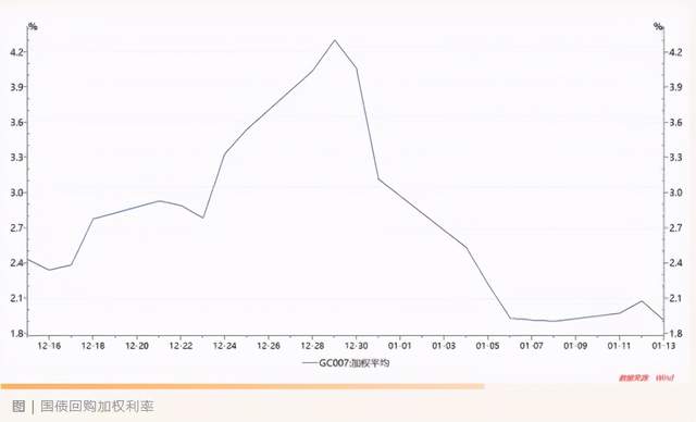 从历史数据也能印证这一点。在2020年12月中旬到2021年1月中旬这段时间,上交所7天国债回购走势出现明显先上升再下降走势,其加权利率也同样如此。临近元旦前的12月29日,利率达到最高峰4.3%,相当于平常收益率的2倍。