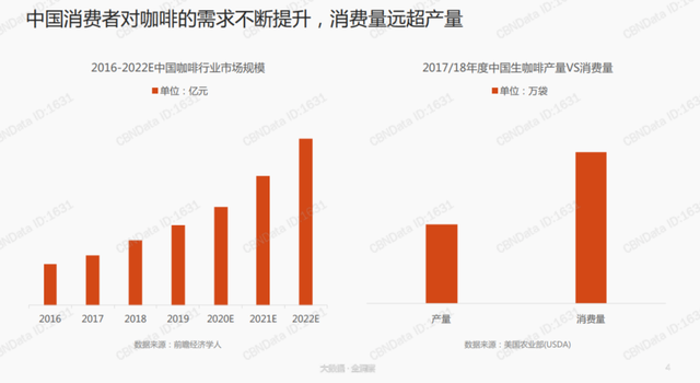 全球咖啡消费平均增速为2%,但中国的咖啡消费正在以每年15%的惊人速度增长。且中国消费者对咖啡的需求不断提升,消费量远超产量。