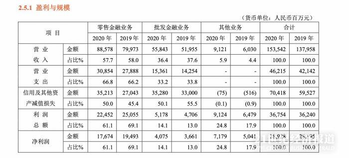 此外,21世纪经济报道记者发现,平安银行在2020年度,其零售、对公、其他三大业务板块均出现较大变动。