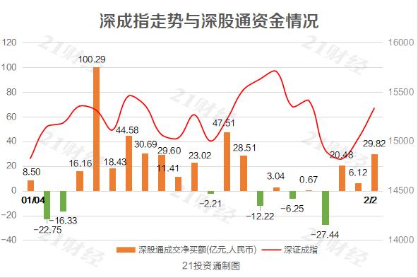 北向资金今日延续净流入态势,全天合计净流入32.81亿元,已经连续三日净流入。其中沪股通小幅净流入2.99亿元,深股通净流入29.82亿元。