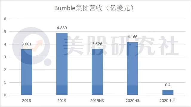Bumble集团有Bumble和Badoo 两个app业务,其中Bumble在2018年营收1.6亿,2019年营收2.75亿,同比增长69.7%, 2020年前三季度营收2.3亿并占整个集团营收的一半以上。同期Tinder营收8.5亿,同比增长30%。Bumble的营收增速要远远大于Tinder。