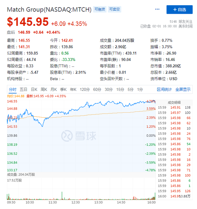 在全球约会社交领域,Match Group 市值是最高的。截至目前,Match Group股价为145.95美元,市值为388.20亿美元。对于Bumble来说,上市之后要提高市值,它的机遇跟挑战在哪?