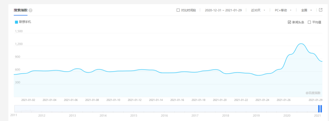 回到线上,联想手机的流量也乏善可陈,根据百度指数,联想手机的线上搜索指数多集中在600左右,而对比华为手机、小米手机,其搜索指数则分别集中在12000和3000。孙燕飚表示,疫情时代导致用户消费的线上化,而在这方面,联想和摩托罗拉也没有优势。