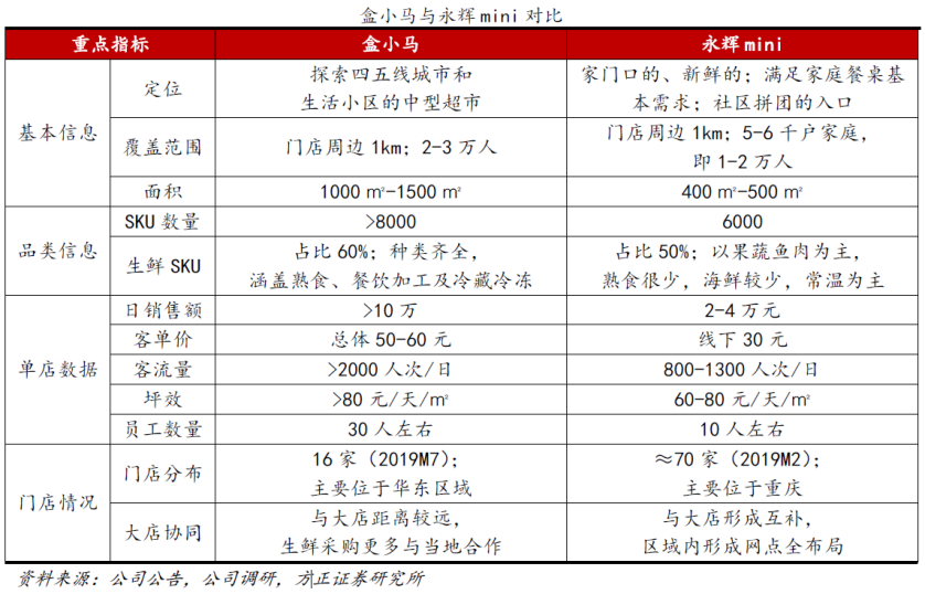 在大润发的“盒小马”与永辉超市的“MINI”对比中,这方面的相似及差异,很明显的就体现出来。