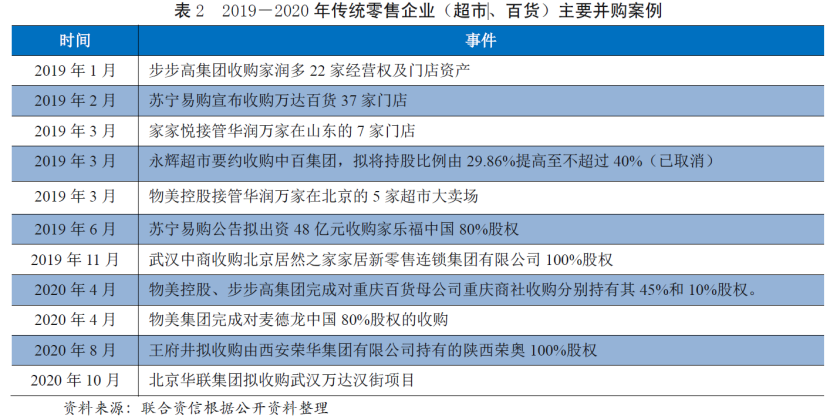 商超的核心竞争力仍旧是供应链管理,跨区域、多业态、多渠道及强整合将成为后电商时代进一步扩大竞争优势,“买长补短”将是保持优势的重要手段。并购与整合,将持续的在中国商超的发展过程中出现,哪怕是刚过去的2020年,也有数笔金额庞大的并购交易。