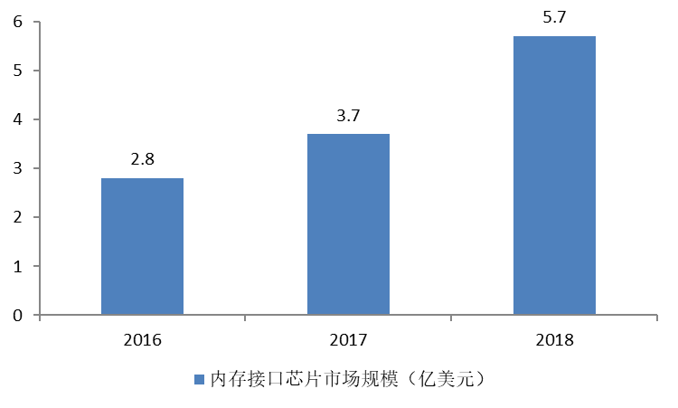 内存接口芯片市场规模不大,但近几年增长迅速。2016年全球内存接口芯片市场规模约2.8亿美元,2018年达到约为5.7亿美元,三年年化增长率为40%。内存接口芯片的下游客户主要为三星电子、海力士、美光科技为代表的内存模组制造商,合计市占率超过90%,需求规模较大,且保持较快增速。(数据来源:观研天下)