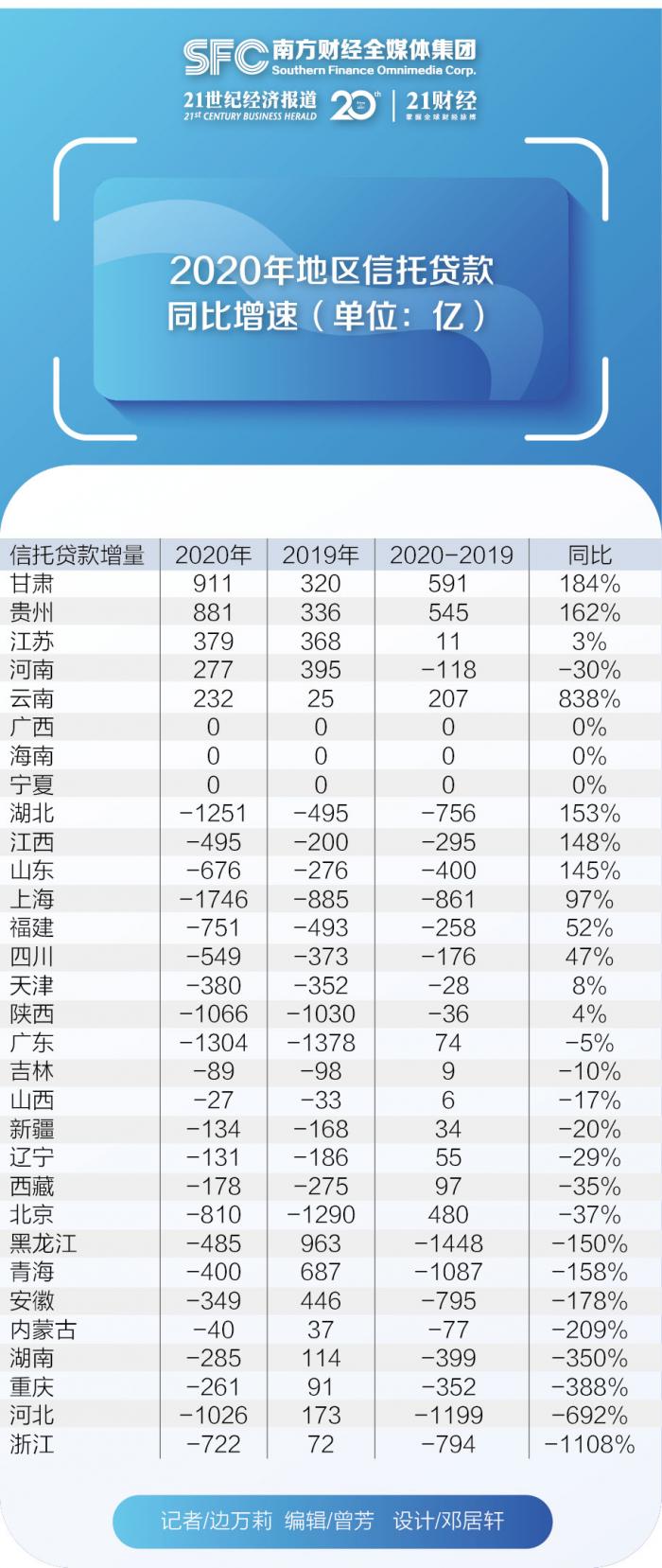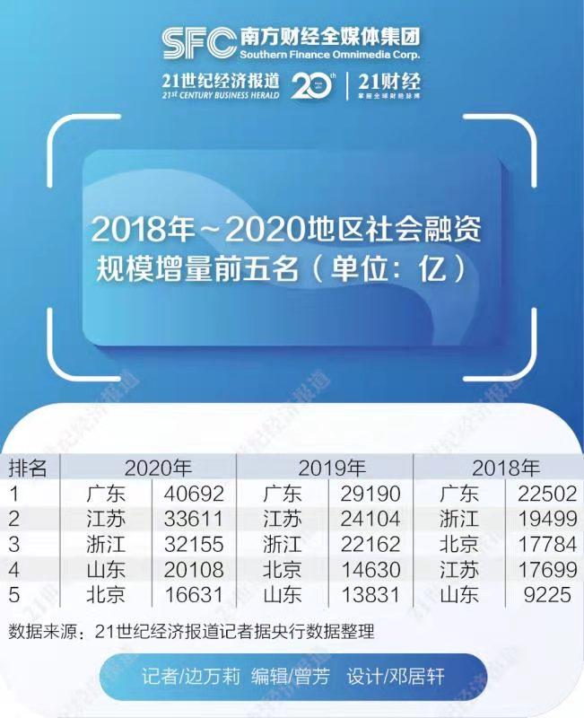 粤苏浙位居2020年社融增量前三,多地信托贷款增量持续压缩