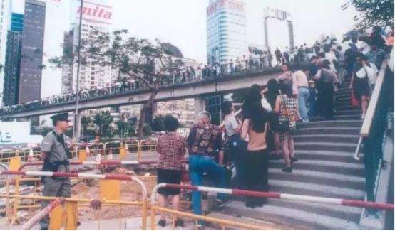 1997年香港灏景湾楼盘开盘,购房者排队购房(图源网络)