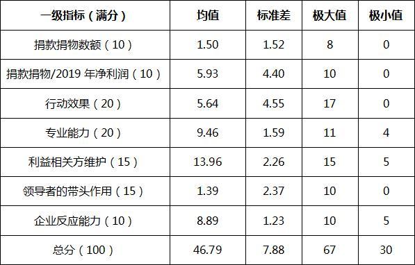 3、在绝对捐赠能力、行动效果和和领导者的带头作用方面,行业整体的表现有待提高