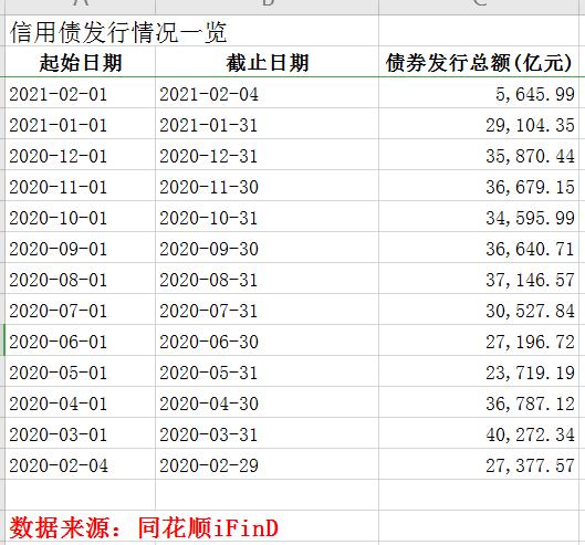 同花顺最新统计显示,截至1月末,2021年1月份国内信用债券市场(包括金融债券、企业债券、公司债券、非金融企业债务融资工具和资产证券化等产品)累计发行2.9万亿元,相较于上个月的3.6万亿元的发行规模,净减少7000亿元。