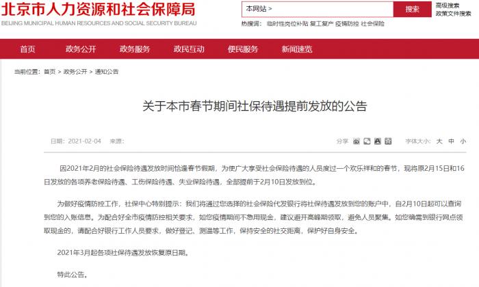 好消息!北京提前发放2月社保待遇,2月10日发放到位!