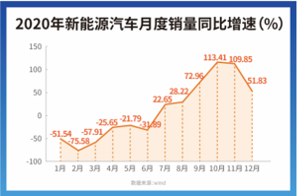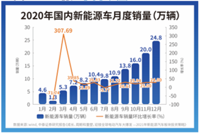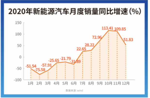 中国的整个产销其实在2020下半年也出现了比较明确的一个拐点,就是在疫情稍微好转之后,而欧洲是顶着疫情的情况下,数据都出现了爆发式的一个增长。所以在这些数据包括基本面的驱动下,2020年整个新能源汽车板块出现了特别大幅的上涨,这个是对整个2020年板块上涨的一个基本总结。