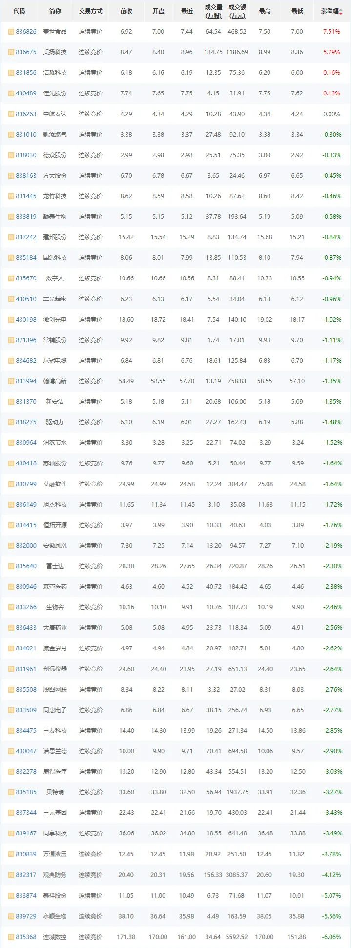 截至2月4日收盘,今日成交金额为4.80亿元,精选层成交金额为2.04亿元,创新层成交金额为1.43亿元,基础层成交金额为1.33亿元;今日成交股数为8641.02万股,精选层成交股数为1165.64万股,创新层成交股数为2812.00万股,基础层成交股数为4663.38万股。