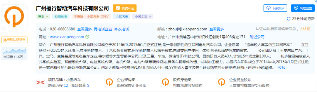 天眼查显示,小鹏汽车成立于2014年,总部位于广州,由前阿里移动事业群总裁何小鹏发起设立,其自动驾驶技术在新势力中最接近特斯拉,2020年全年交付量为2.7万辆。