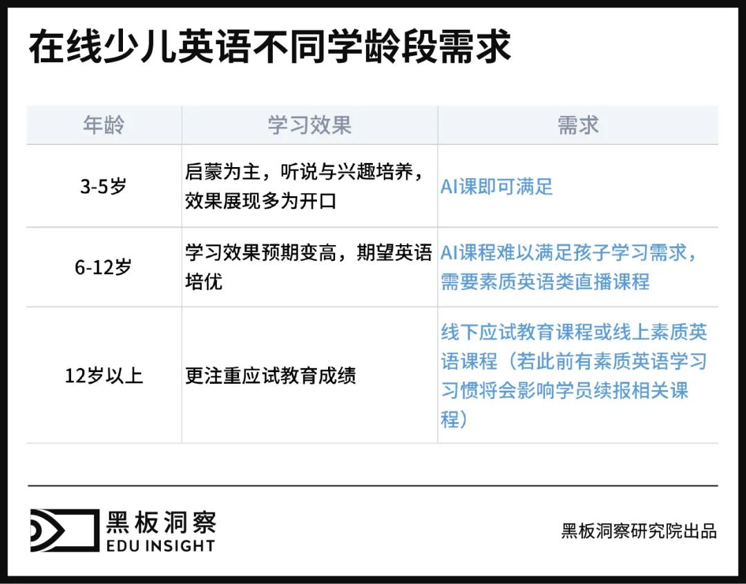 不同学龄段的学员课程需求不尽相同。但是,目前直播类课程中,大量少儿英语机构的定位都在少儿英语启蒙,主打核心定位、卖点都是“爱学敢说”、“在线好外教”等等,机构卖点同质化竞争严重。走“培优”路线的在线少儿英语机构少之又少。