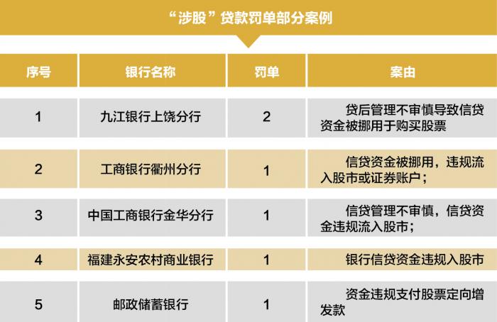 今年1月份股市出现一波小行情,也吸引了部分信贷资金违规流入股市,工商银行、九江银行等银行都被查出信贷资金被挪用进入股市的案例。相关情况列示如下: