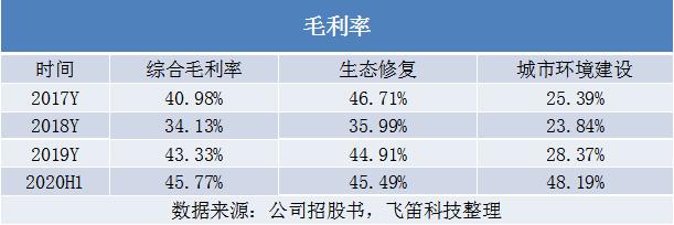 城市环境建设的毛利率相对较低,但2020年上半年毛利率大幅上升,主要是因为受疫情影响,养护出勤频次减少,人工费用有所下降所致。