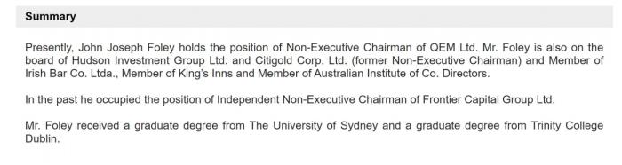 在股票与财经新闻网站MarketScreener上未见Foley(弗雷)先生与GIB或者AFF有任何联系,但其对Foley先生的其他介绍属实。