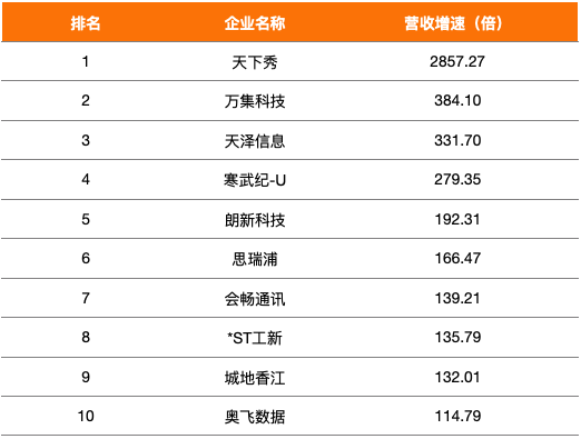 表2:2019年上市软件公司营收增速榜单
