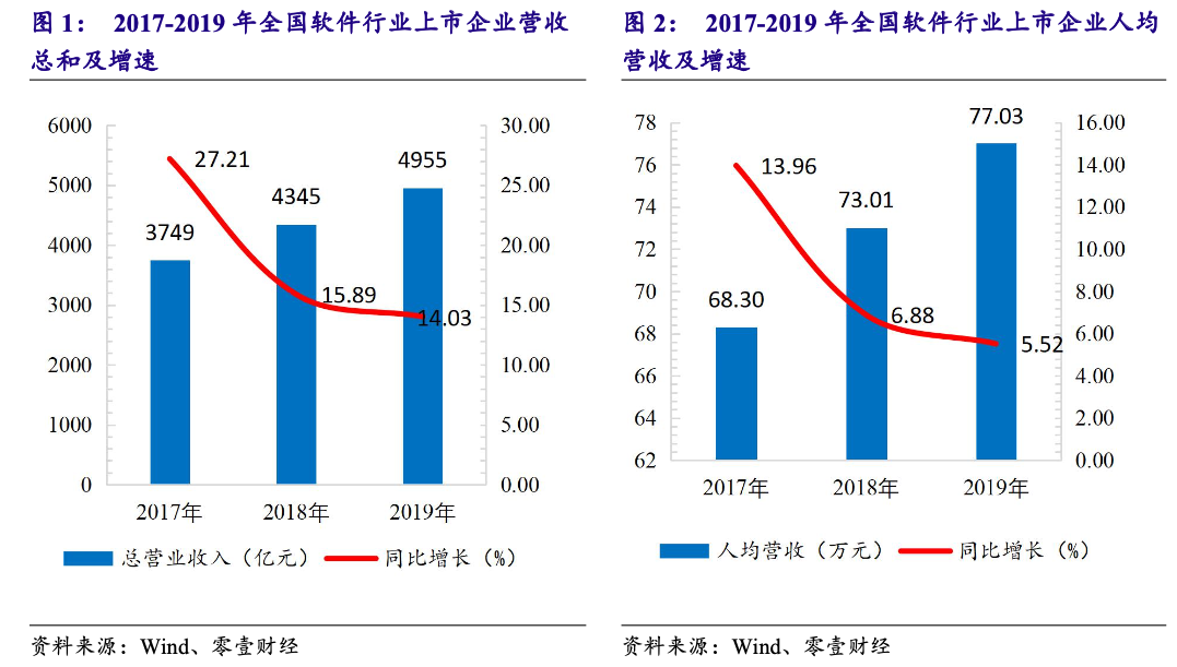 数据显示,全国软件行业上市公司业绩持续稳健增长。在2019年,全国软件行业上市公司累计完成营业收入4955亿元,同比增长14.03%。人均实现业务收入77.03万元,同比增长5.52%。