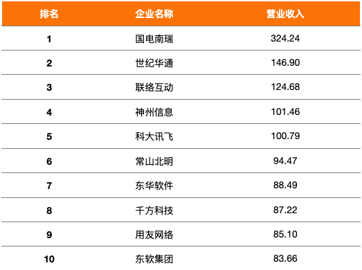 从具体企业来看,2019年软件行业上市企业营业收入榜单中,国电南瑞连续三年蝉联榜首,当年营收达324.24亿元。联络互动、神州信息、科大讯飞、常山北明、东华软件以及用友网络也连续三年位居榜单前十之列。
