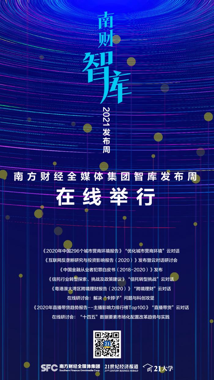 为更好解读“十四五”时期的发展重点,服务好中国高质量发展、粤港澳大湾区和深圳先行示范区建设,助力广东打造新发展格局的战略支点、加快高质量发展,在2021 年1月29日至2月6日期间,南方财经全媒体集团智库发布周圆满举行,发布了6份重磅报告,并且成功举行2场在线主题研讨会。