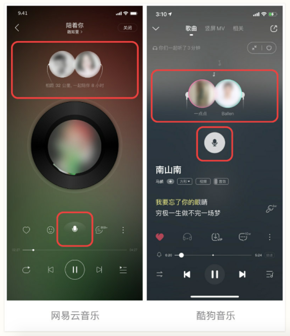 在这样的背景下,音乐社交重新被推至风口,两大平台围绕互动听歌、直播等方式展开了一系列的尝试。