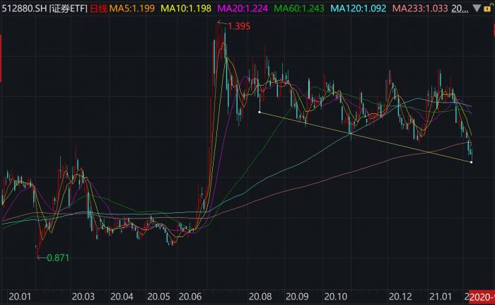 证券ETF走势(2019.12.27-2021.02.08)