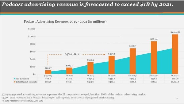 2020年受疫情黑天鹅影响,因更多用户宅在家随之而来的空虚和无聊让播客这一可与多项活动同时进行的耳朵活动成为了完美的娱乐方式。据Grand View Research的数据显示,全球播客市场规模在2019年只有92.8亿美元,而疫情间光是3月到4月就实现了42%的增长,预计将在未来7年之间以27.5%的复合年增长率在2027年达到605亿美元。