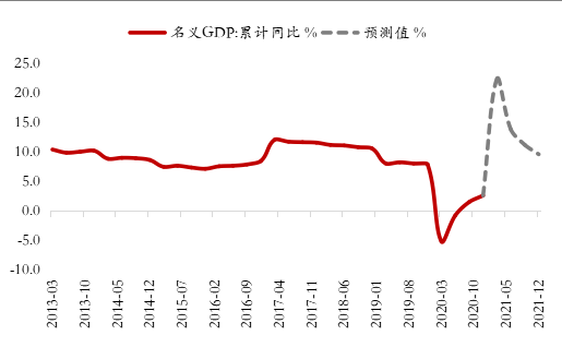 图3 预计2021年中国名义GDP增速将回升9.4%左右