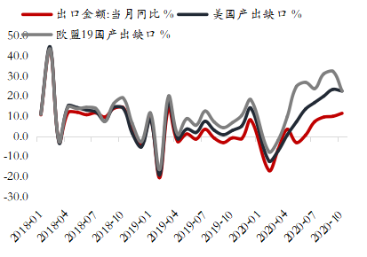 考虑到疫苗产能以及接种推广所需时间,预计下半年疫情对于经济的影响才会逐渐消退,全球经济将进入恢复期。上半年海外防疫物资需求以及产出缺口仍将带动出口保持高增长,下半年受益于全球经济同步恢复,出口也将有所支撑,预计2021年全年出口增速或将达到6.4%。