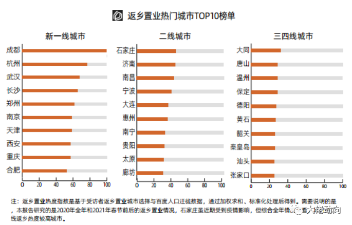 返乡置业的目标,也开始转向以二线城市为主和部分三线城市。