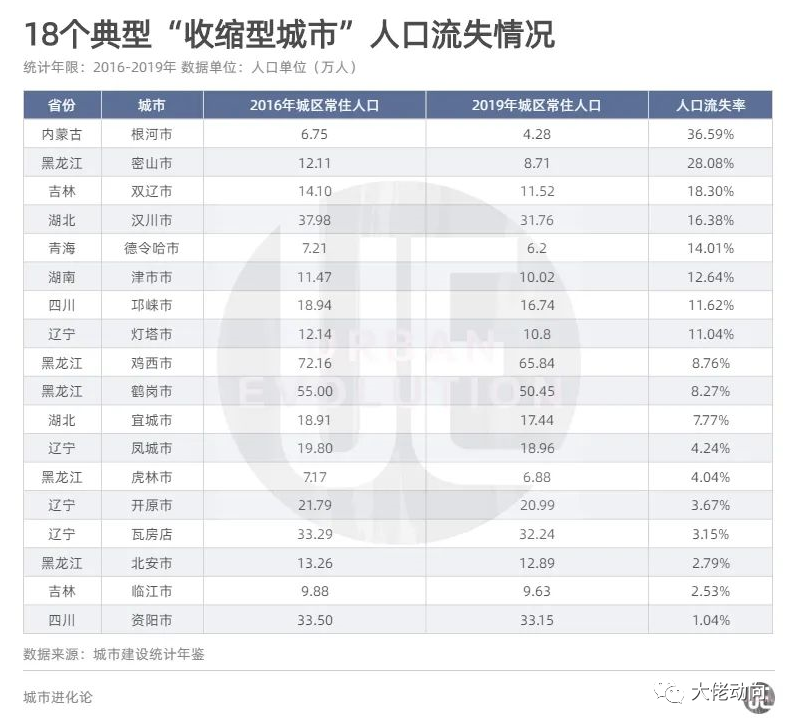 图片来源:城市进化论这18个城市中,全部属于四五线城市,其中东北11个,成为重灾区。