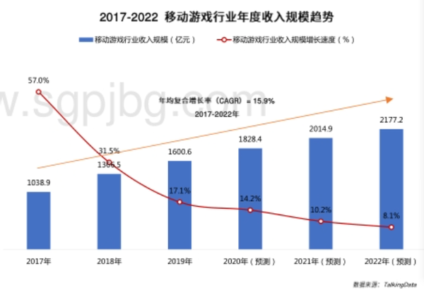 相对而言,手游具有很大潜力,据talkingdata《2017-2022移动游戏行业年度收入规模趋势》数据显示:预计2020年移动游戏行业规模达到2177.2亿元,2017-2022年复合增长率达到15.9%。